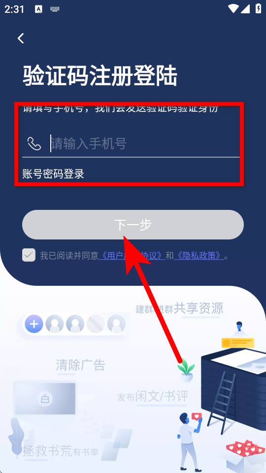 4、在注册页面,输入手机号后点击下一步,即可完成账号注册流程。