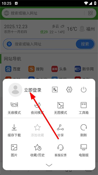 2、在弹出的菜单中,点击立即登录,进入个人中心页面。