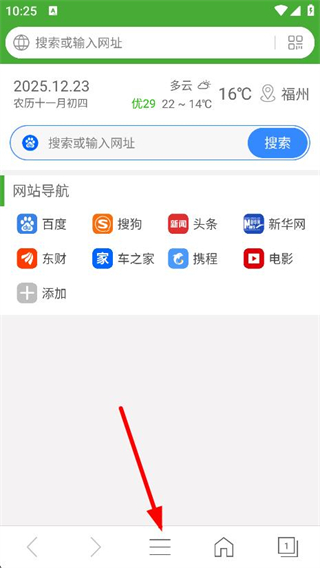 1、打开好网址大全app,点击页面底部的三横线菜单按钮。