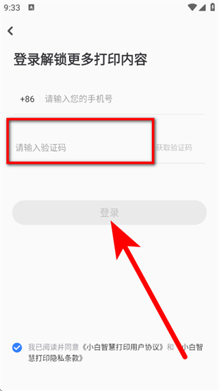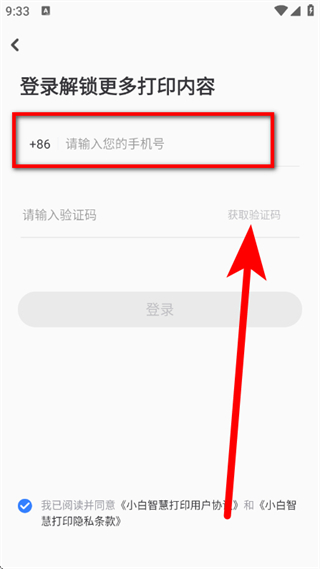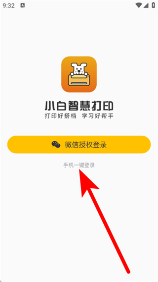 1、在小白智慧打印页面,点击手机一键登录,进入登录页面。
