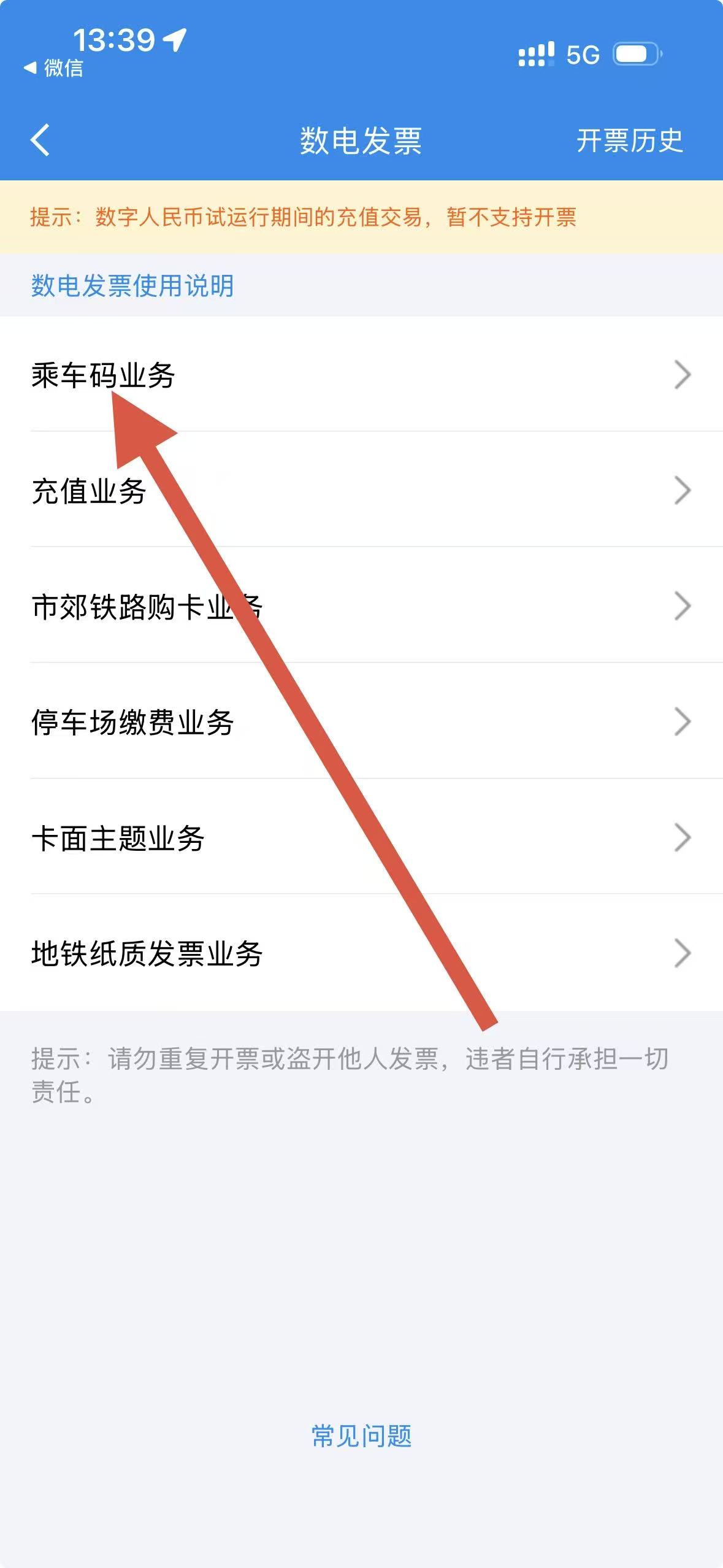 3、进入数电发票页面后,选择对应的业务类型,比如乘车码业务。