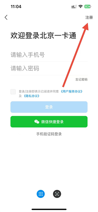 3、在登录界面右上角,找到注册选项并点击,进入需输入手机号与密码的注册相关页面。
