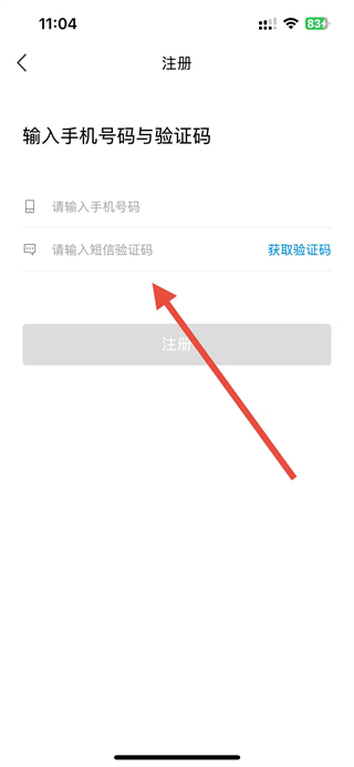 4、在注册页面输入框填写手机号,点击获取验证码后填入短信验证码,即可完成账号注册操作。