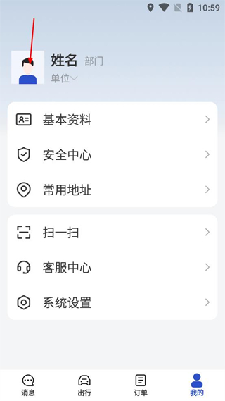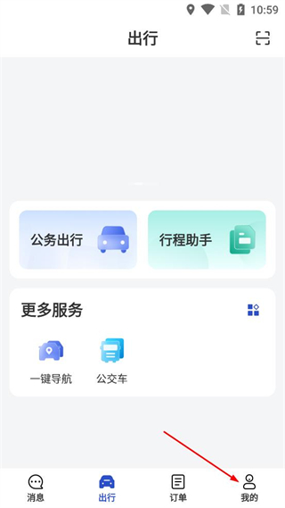 1、打开出行应用,在出行页面找到底部的我的选项,点击该选项,进入个人中心页面。