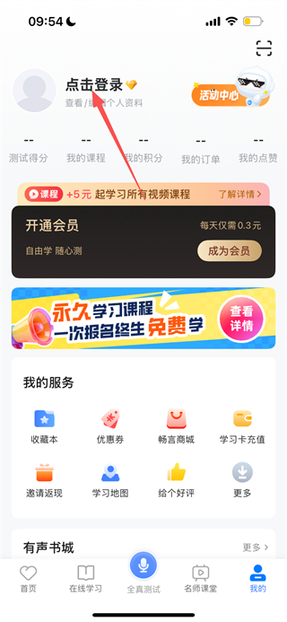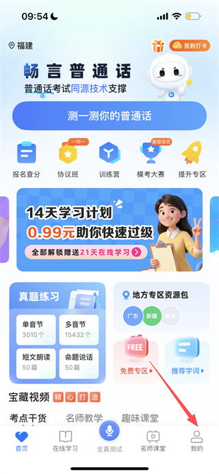 1、在畅言普通话首页点击底部我的选项,进入个人页面。