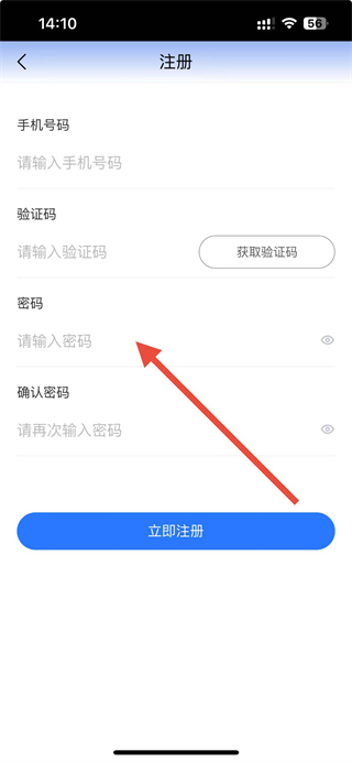 4、在注册界面输入手机号码,获取验证码,再设置密码后,点击立即注册完成账号注册。