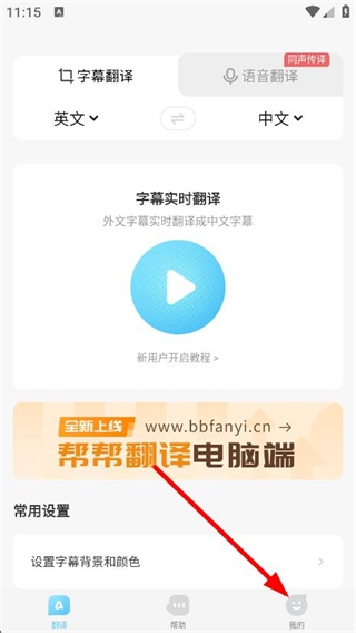 1、打开帮帮字幕翻译app,点击底部导航栏的我的。