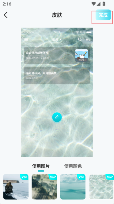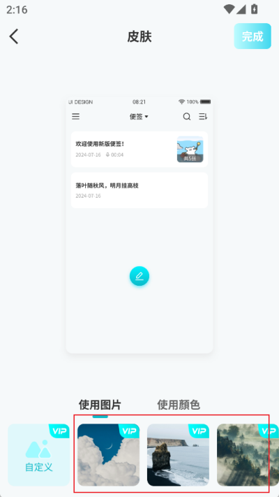 4、选择自己心仪的背景图片后,点击右上角的【完成】选项即可更换,不过该功能需要用户开启会员特权。