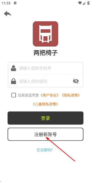 1、在登录页面点击注册新账号选项,进入注册账号页面。