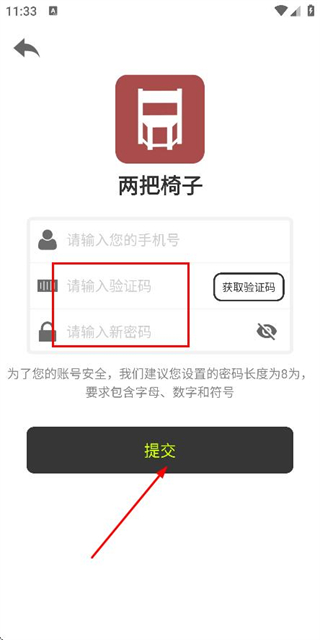 3、在注册账号页面填写验证码和密码,勾选协议后点击提交完成注册操作。