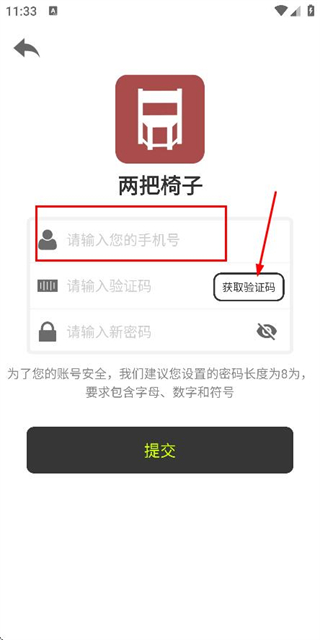 2、在注册账号页面填写手机号码后,点击获取验证码。