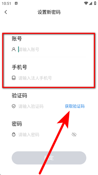 2、在设置新密码页面,在输入框输入手机号,点击获取验证码。