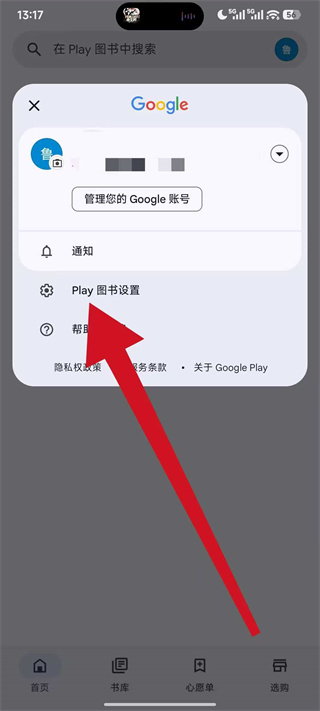 2、在弹出的菜单中选择Play图书设置选项,进入应用的设置页面。