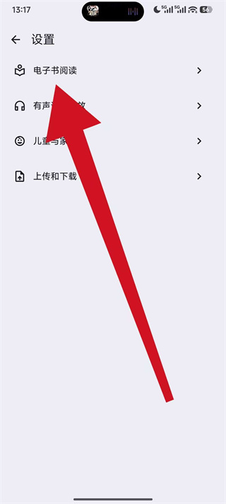 3、在设置页面点击电子书阅读选项,进入电子书阅读的配置界面。