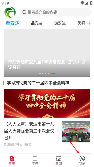 1、在安达融媒首页点击底部我的选项,进入个人页面。