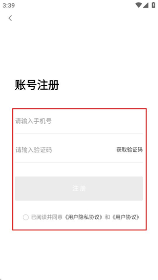 4、在账号注册页面填写信息并勾选协议后,点击注册按钮完成操作。