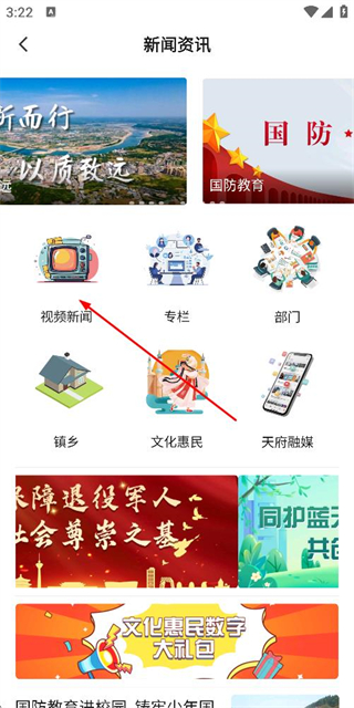 2、在新闻资讯页面点击视频新闻,进入视频新闻页面。