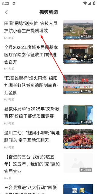 3、在视频新闻页面点击目标新闻,进入新闻详情页。