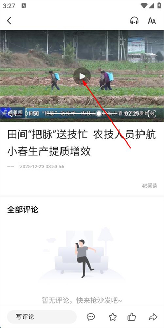 4、在新闻详情页点击上方视频的播放按钮,即可观看对应新闻视频。