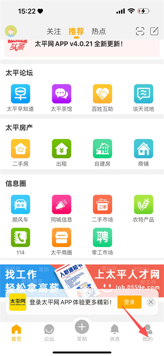 2、在太平网APP首页,点击底部的我的选项,进入个人中心页面。