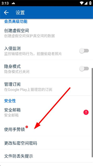 4、点击激活手势锁的开关,按提示开启手势密码。