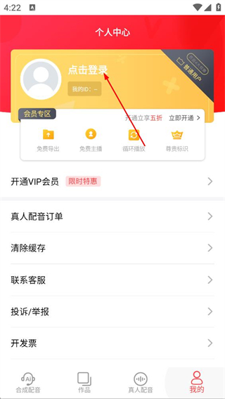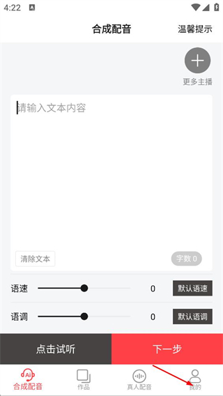 1、在配音圈的页面,点击底部的我的选项,进入个人中心页面。