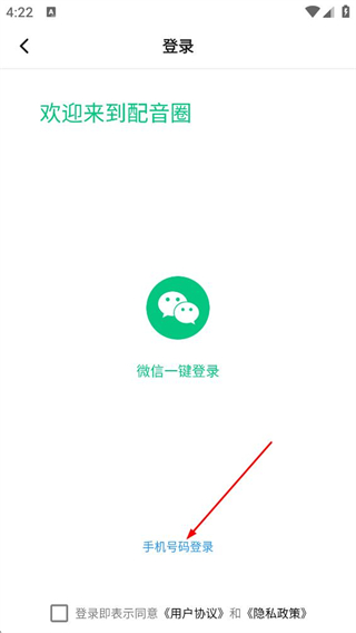 3、在登录选择页面,点击手机号码登录选项,进入手机号登录表单页面。