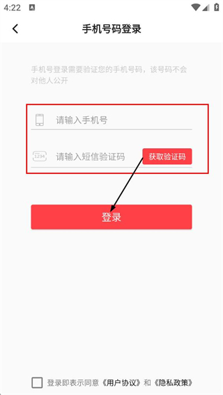 4、在手机号登录页,填写手机号,点击获取验证码后填写短信验证码,点击登录,完成登录。