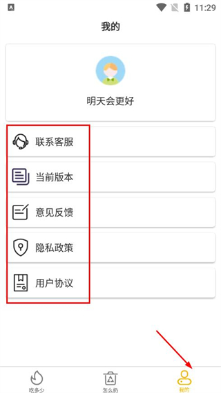 3、包含联系客服、版本查看、意见反馈、隐私政策及用户协议等个人相关服务选项。