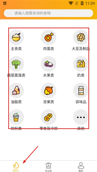 1、可按主食类、肉蛋类等分类查询各类食物信息,帮助了解食物相关内容。