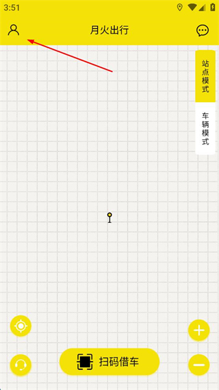2、进入月火出行主界面,找到界面左上方的相关入口,点击该入口进入对应页面。