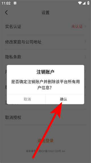 3、在设置页面,点击注销账户,弹出确认弹窗。