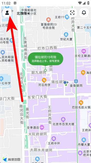 1、在地图首页,点击左上角的头像区域,进入我的页面。