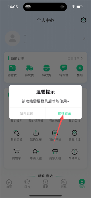 3、在弹窗中点击前往登录选项,进入登录页面。