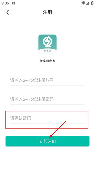 3、在注册页,填写请确认密码,完成后点击立即注册,完成账号注册。