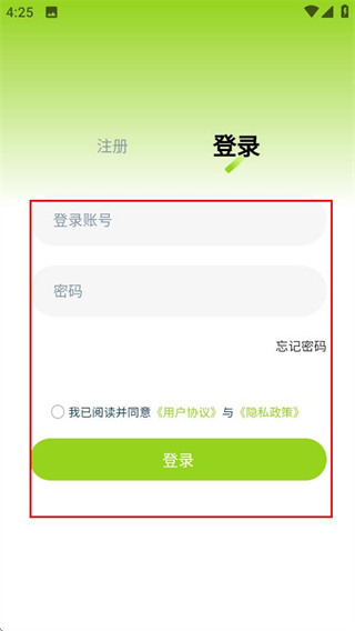 3、在登录页面填写账号密码并勾选协议后,点击登录按钮完成操作。