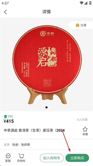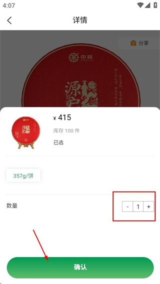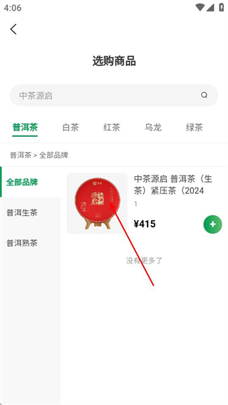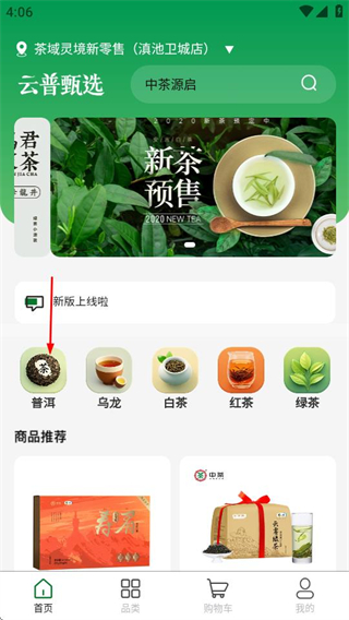 1、在首页点击目标茶叶分类选项,进入选购商品页面。