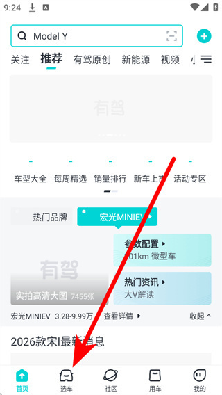 1、打开百度有驾,点击底部导航栏的选车,进入选车页面。