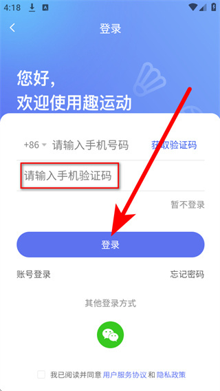 4、将收到的短信验证码填入手机验证码栏,勾选相关协议,点击登录,即可完成账号登录。