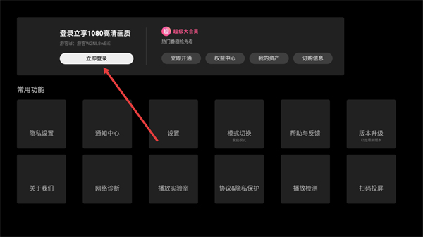 2、进入我的页面内,点击上方立即登录的功能按钮。