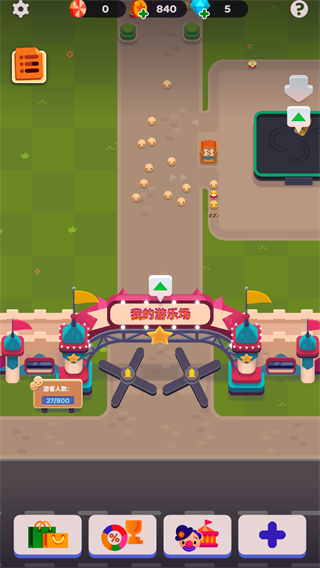 4、特色运营辅助体系,可聘用搞笑吉祥物活跃氛围、招募专业员工维护设施与服务游客,不同员工拥有专属技能,合理调配人力能大幅提升乐园运营效率。