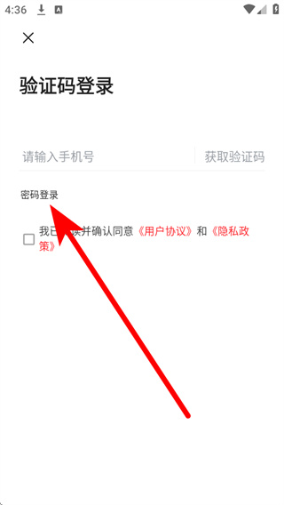 3、在登录界面选择密码登录,进入密码登录页面。