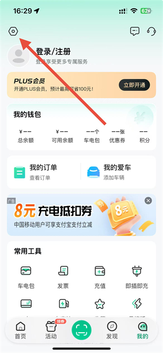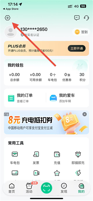 1、打开e充电app,点击底部导航栏的我的选项进入个人页面。