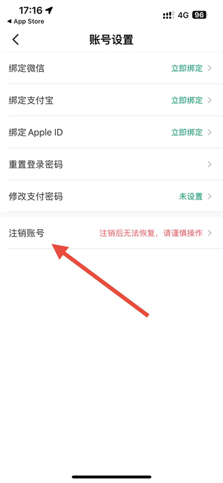 4、在账号设置页面中,点击注销账号选项,按照提示完成账号注销操作即可。