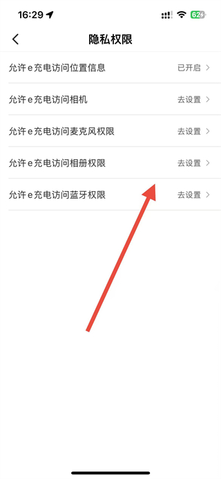 4、在隐私权限页面,选择需要设置的权限,点击对应项右侧的去设置按钮,即可调整该权限的授权状态。