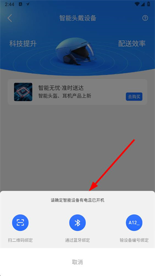 4、选择绑定方式,按照提示完成头盔绑定操作即可。