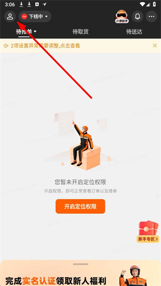 1、在抢单页面,点击左上角入口,进入个人相关页面。