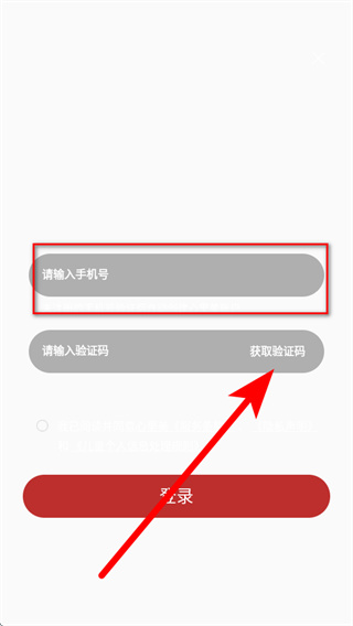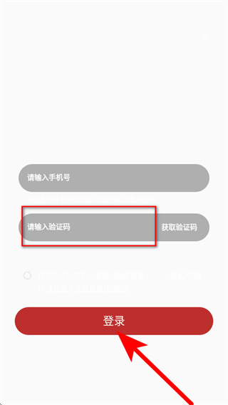 4、将收到的短信验证码填入验证码栏,勾选相关协议后,点击登录,即可完成账号登录。