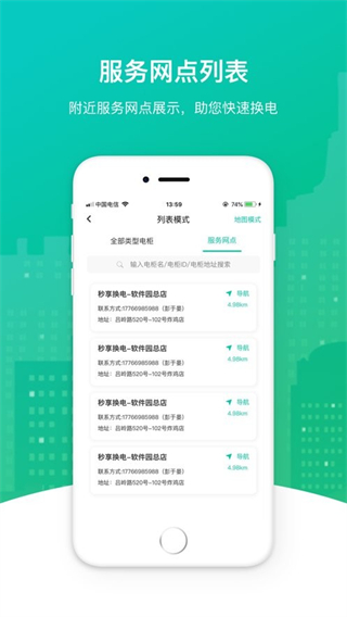 支持实时查看周边换电柜具体位置、剩余电池数量与使用状态,提供导航指引功能,一键规划最优前往路线,快速找到就近可用电柜,告别盲目寻找。