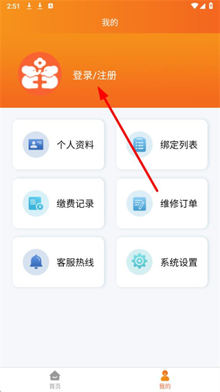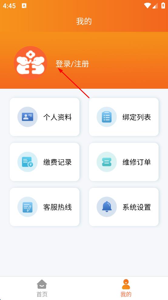 2、进入对应界面后,找到登录注册选项并点击。
